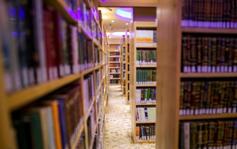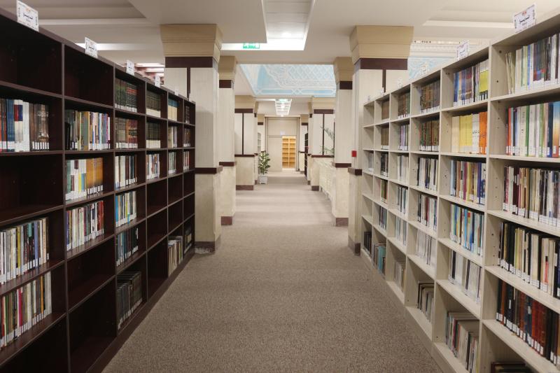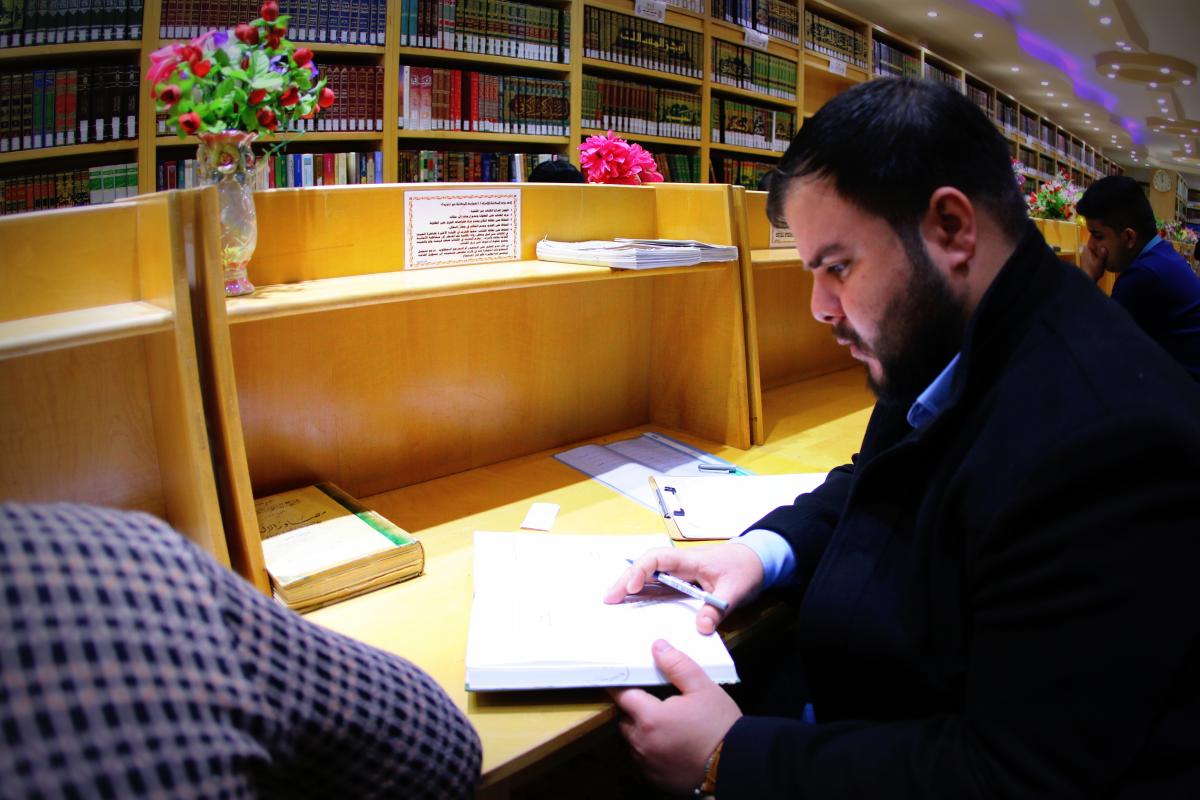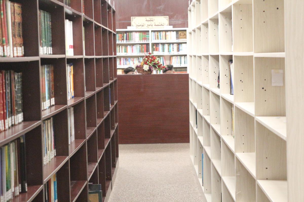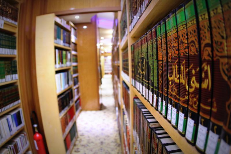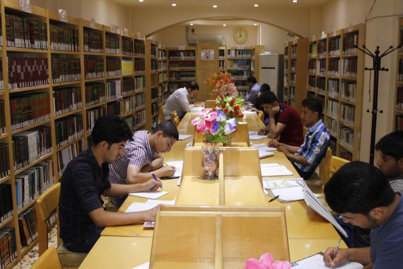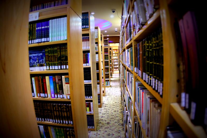 وهي على نحو الرفوف المفتوحة، حيث يكون الكتاب أمام القارئ والباحث مباشرةً ممّا يساعد على سهولة البحث و الاطلاع على الكتب والمصادر الموجودة داخل القاعة - كما أن كتبها رُتِّبَت حسب التصنيف الموضوعي - كالتفسير والمباحث القرآنية، والحديث الشريف، والرجال والتراجم وغيرها من موضوعات المعرفة، علماً إنّ معظم كتب هذه القاعة هي باللغة العربية كما تشتمل على مجموعة من الكتب بالّلغات الأُخرى من قبيل اللغة الفارسية والاردو والانجليزية وغيرها، ويقدر عدد الكتب لكلا القاعتين (قاعة الرجال وقاعة النساء) في الوقت الحاضر (عام 1439 هـ 2018 م) بـ اكثر من (200 ألف) كتاب .