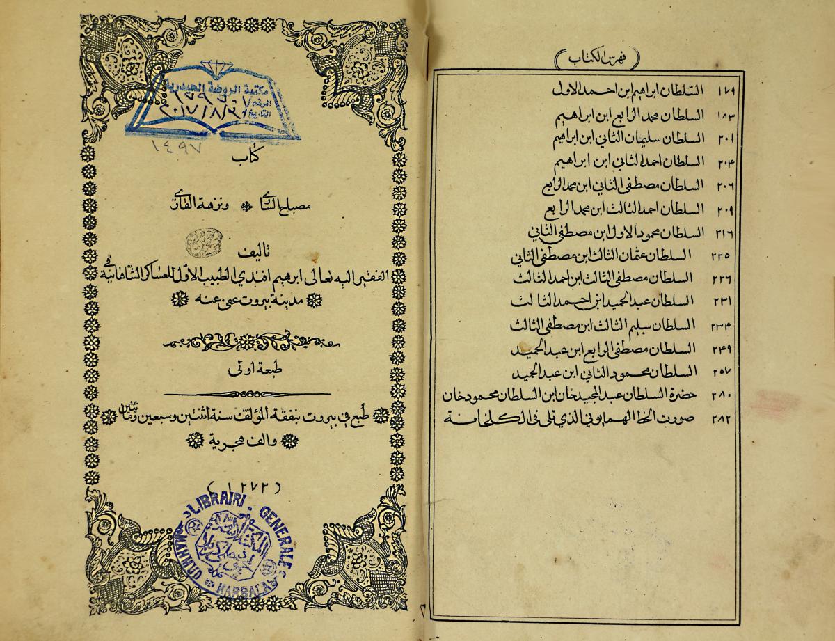 المؤلف : إبراهيم أفندي الطبيب الاول للعساكر الشاهانية في مدينة بيروت .